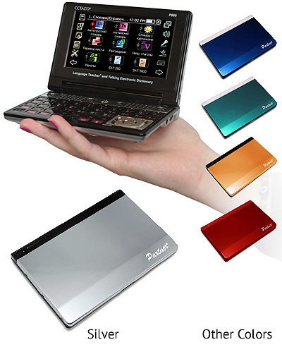 Learning a language has never been this easy or portable before now! Simply put, you can learn an Entire Language with the help of the Partner 13MT900 or you can have it talk for you. The Language Teacher program provides language learning to the fullest, and will have you speaking in no time no matter what your level of experience is. Speech recognition and speech to speech translation modules will listen to your pronunciation of foreign words, phrases, and dialogues, giving you feedback along the way. The new U-Learn feature even lets you learn hands and eyes free! More than 5 language games and programs will ensure learning is not only interactive but fun. Don't have time to learn? Well, then start communicating now! Voice activated phrases and a Full Text Translator will allow you to interact with people in your target language without having to learn it. All 14,000 voice-activated phrases are spoken in a real human voice to facilitate understanding and includes a massive human-voice talking dictionary. A full electronic translator, physical keyboard and touchscreen make the Partner P900 not only sophisticated but also extremely easy to use.